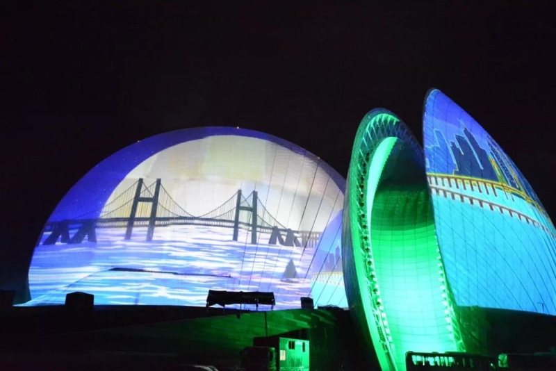 珠生于贝,贝生于海。珠海仅用40年,从小渔村发展成现代化大都市。新时代的新名片在夜幕之下,数十台NEC 4万流明4K双色激光工程投影机,将城市的时代变迁跃然于大剧院建筑之上。在现场绚烂灯光协调配合下,一大一小的珠海大剧院建筑墙体,宛如两颗微微张合的贝壳,将珠海大剧院变成了香炉湾上最美的明珠。