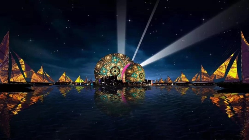 珠生于贝,贝生于海。珠海仅用40年,从小渔村发展成现代化大都市。新时代的新名片在夜幕之下,数十台NEC 4万流明4K双色激光工程投影机,将城市的时代变迁跃然于大剧院建筑之上。在现场绚烂灯光协调配合下,一大一小的珠海大剧院建筑墙体,宛如两颗微微张合的贝壳,将珠海大剧院变成了香炉湾上最美的明珠。